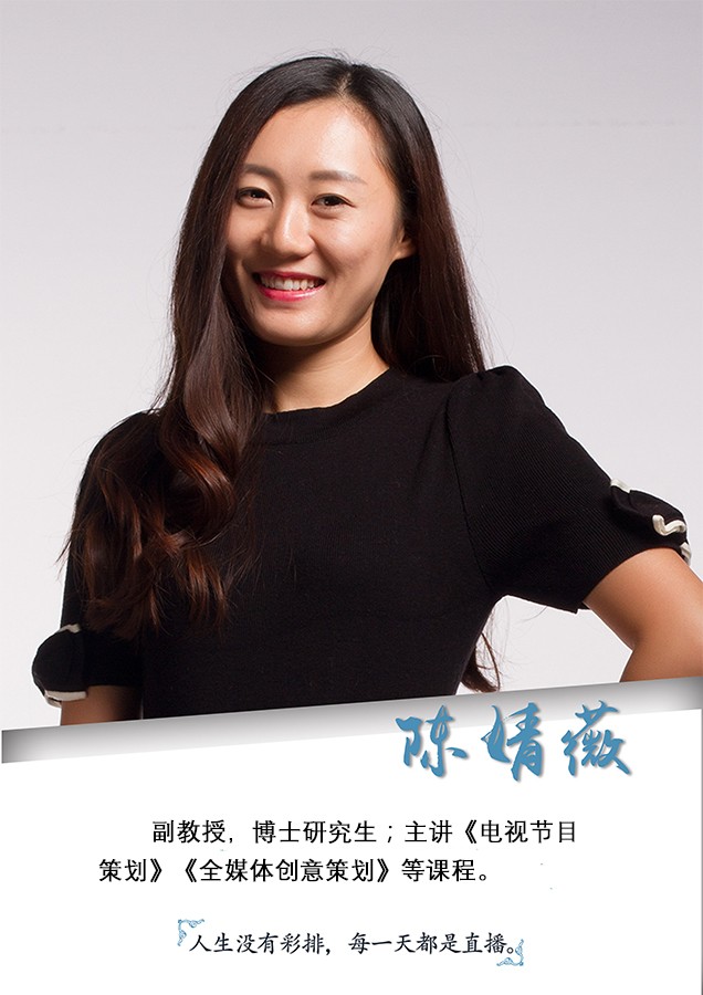 陈婧薇,女,1984年生,江苏南京人。2007年毕业于中国传媒大学广播电视编导专业,获文学学士学位,2011年毕业于中国传媒大学广播电视艺术学专业,获文学硕士学位,2021年毕业于河北大学传播学专业,获文学博士学位。现为广播电视编导专业主任,河北师范大学新闻传播学院副教授,影视艺术系主任,艺术学理论专业、广播电视专业硕士生导师。中国高校影视学会会员。主要研究方向为:文化传播、电视文艺学、新媒体传播。主讲课程:全媒体节目策划、新媒体概论、艺术创作方法、新媒体影像创作